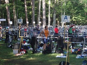 Zone de transition : Il n’y a pas de règlement particulier comparé aux autres courses brandés 70.3. Alors vous pouvez laisser votre sac sous votre vélo etc… Personnellement, je n’aime pas. L’espace pour la zone de transition est plutôt restreint, alors on peut s’attendre à des changements pour l’édition de 2010.
