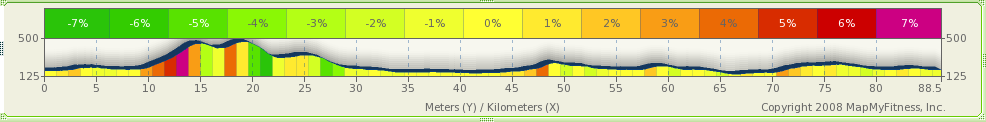 Selon mapmyride, le dénivelé positif est de 712m. L’ancien parcours faisait 473 x2 de D+.