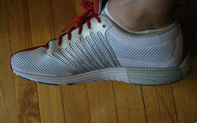 Généralement, un racing flat n’est pas utilisable à tous les jours avec ce type de chaussures parce qu’elle entraine trop de dégat dans vos joins et de traumatismes musculaires. Il y a juste les Nike Lunaracers avec lesquels je n’ai pas ces inconvénients. Ces pourquoi, en utilisant les k-ruuz et en retrouvant ce fameux mal de jambes provoqué par le manque de coussin… j’avais l’impression de faire un retour en arrière comparé à la lunaracer surtout que je tiens a vous rappeler qu’elles sont plus légères que les k-ruuz!