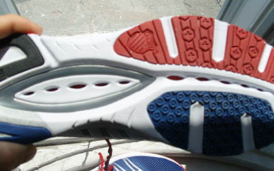 Dernier point, et peut-etre le plus intéressant, c’est l’effort que k-swiss a fait sur sa semelle, c’est effectivement des trous. Cela me paraissait totalement inutile, d’ailleurs les meilleurs racing-flat du marché n’en comportent pas. Oui, mais le triathlon c’est différent, la section course à pied d’un triathlon est généralement faite sous la chaleur et nous avons pris l’habitude de nous asperger d eau sur nous. Le grand problème , cette eau termine généralement dans les chaussures et cela entraine un grand inconfort, une chaussure lourde et un risque d’ampoule. Avec ces trous, l’eau est tout de suite éjectée!