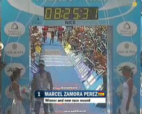 Marcel Zamora avait déjà gagné 4 fois l’ironman de Nice. Alors, oui il vient de gagner pour la cinquième fois, et il vient de s’offrir un nouveau record du parcours? 8:25:31 avec un parcours de vélo de plus de 3000m de dénivelé… Pour votre info 8:25:31, c’est 52:12 en natation, 4:46:39 (37.68km/h de moyenne!) et un marathon de 2:42…. 18:14 pour le premier 5.25 km…