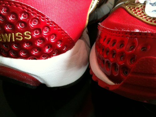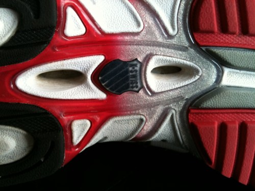 Les parties frontale et arrière de la chaussure sont percées de trous également afin de créer un flux d’air pour rafraichir le pied, lors de chaque balancement vers l’avant. Et ça, c’est une des choses que vous sentez tout de suite !! Surtout lorsque vous recevez la paire en démo au mois de février !!!