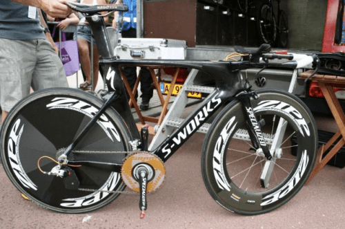 Au passage quelqu’un peut-il m’expliquer comment on peut investir autant d’argent dans des roues, des casques, des caches chaussures, des freins trafiqués pour réduire les parties exposées au vent… et pourquoi c’est un tel bordel dans les cables?… (les photos sont de velonews.com)
