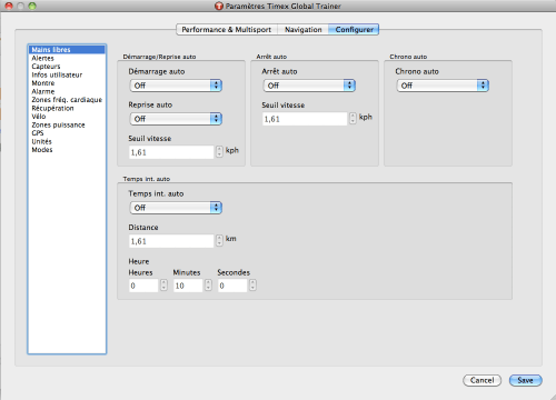 Alors voici, la grande raison pourquoi on n’était impatient d’utiliser la Timex Global Trainer est du fait qu’elle fonctionne avec toutes les périphériques ANT+. Si vous avez déjà un compteur vélo, une ceinture ANT+ elle les détectera tout de suite, aussi, la montre sera capable d’afficher vos chiffres de puissances des systèmes Quarq, Powertap et SRM. Cela signifie que pour une fois, vous n’aurez plus le problème que votre ceinture de HRM est différente que celle de votre capteur de puissance de vélo… En fait, vous n’aurez plus besoin d’avoir une compteur (puissance, vitesse, cadence) sur votre vélo puisque la montre le fera pour vous. Par contre, elle n’est pas aussi complète dans son affichage et certaines données importante comme le TSS, puissance normalisée ne sera disponible qu’a partir de votre ordinateur. Encore là, ces données sont très intéressantes pour sa pacer durant un ironman, mais durant un entrainement la Global Trainer sera largement suffisante. Enfin ceux qui ne lachent pas du regard leur compteur vélo risque de trouver difficile de lire sans cesse leurs données sur le poignet.