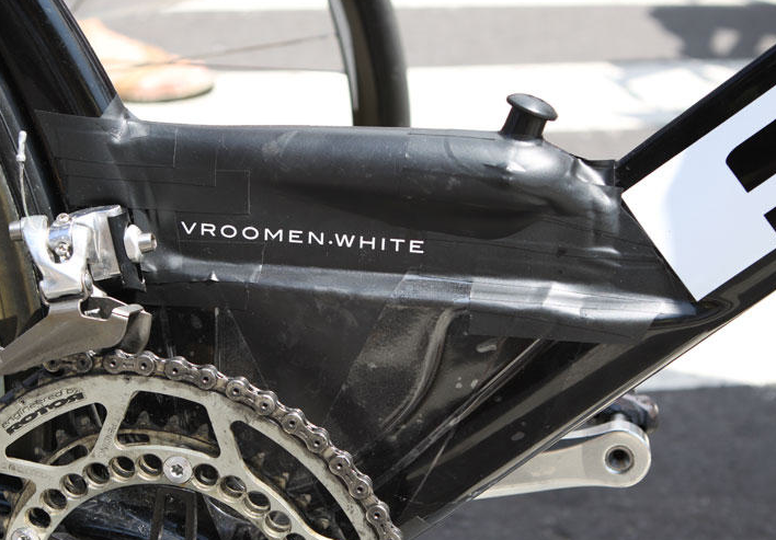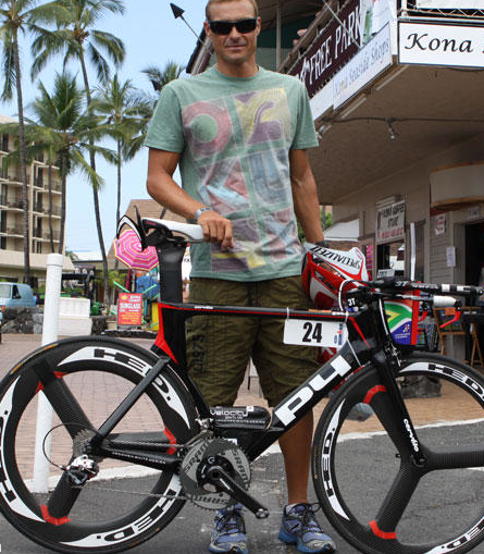 Chriss Lieto s’est promené toute la semaine à Kona avec ce vélo. Le truc ironique, c’est de rouler avec ce vélo complètement inutile avec des roues carbone portant des enfants d’Afrique que tu « aides »… Roues carbone, enfants défavorisés, single speed, cherchez l’erreur! Pour votre information, dans le milieu, Chris Lieto est en train de devenir la risée à cause de cela (chronique/info pub dans le USA TODAY). Au passage, il devrait porter les nouvelles K-swiss, les Kwicky…