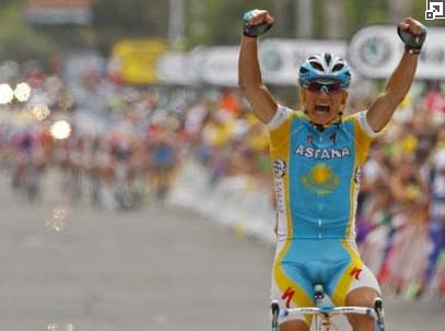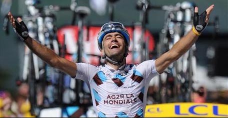 Anthony Charteau (FRA/BBox), meilleur grimpeur: «Ça s’est vraiment bien passé. Je savais que s’il y avait quelque chose à faire c’était dans les deux premiers cols, je les connaissais vraiment bien. Il fallait être réaliste, il y a de très bons grimpeurs et de la fatigue, il fallait que je cible. J’ai éliminé quelques coureurs. Je sais que Christophe Moreau s’est rapproché. J’ai un coureur à surveiller, ce sera plus facile.»(L’équipe)